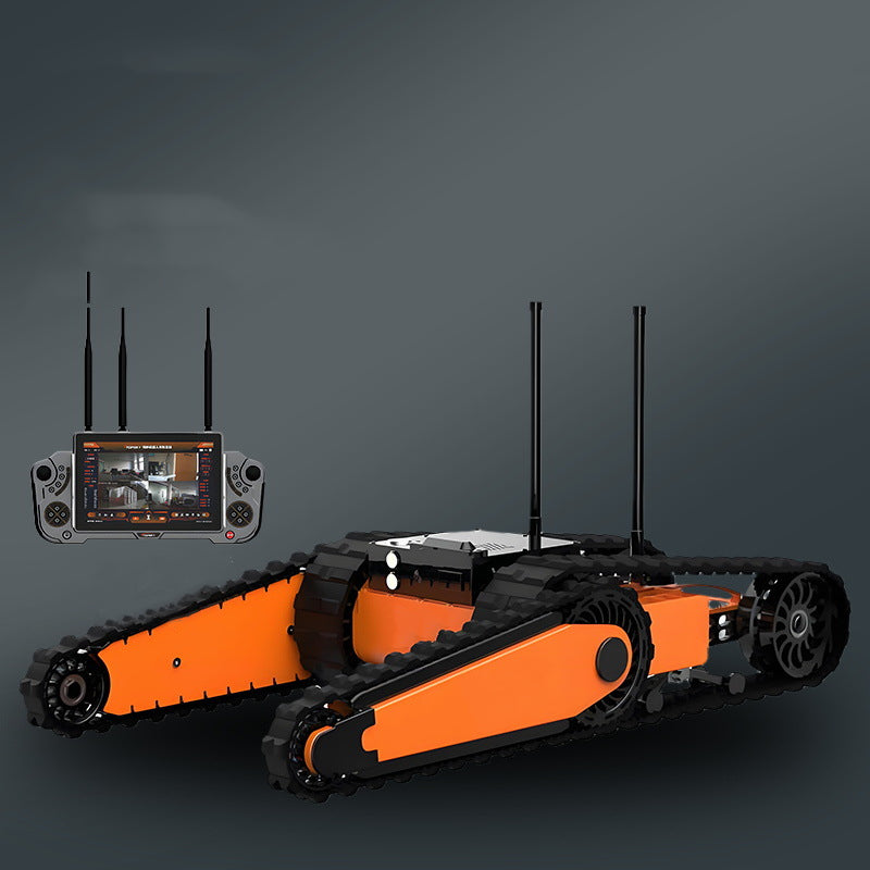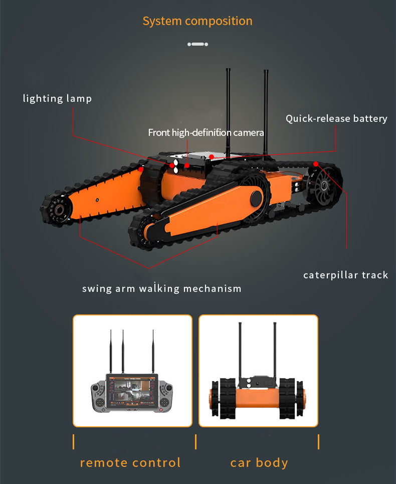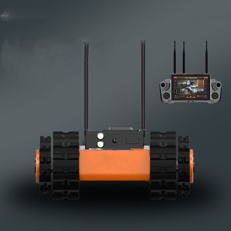 System composition: It mainly consists of three parts: remote control, vehicle body and mounting. The remote control controls and displays the video data information sent back by the vehicle body; the vehicle body is mainly responsible for mounting.