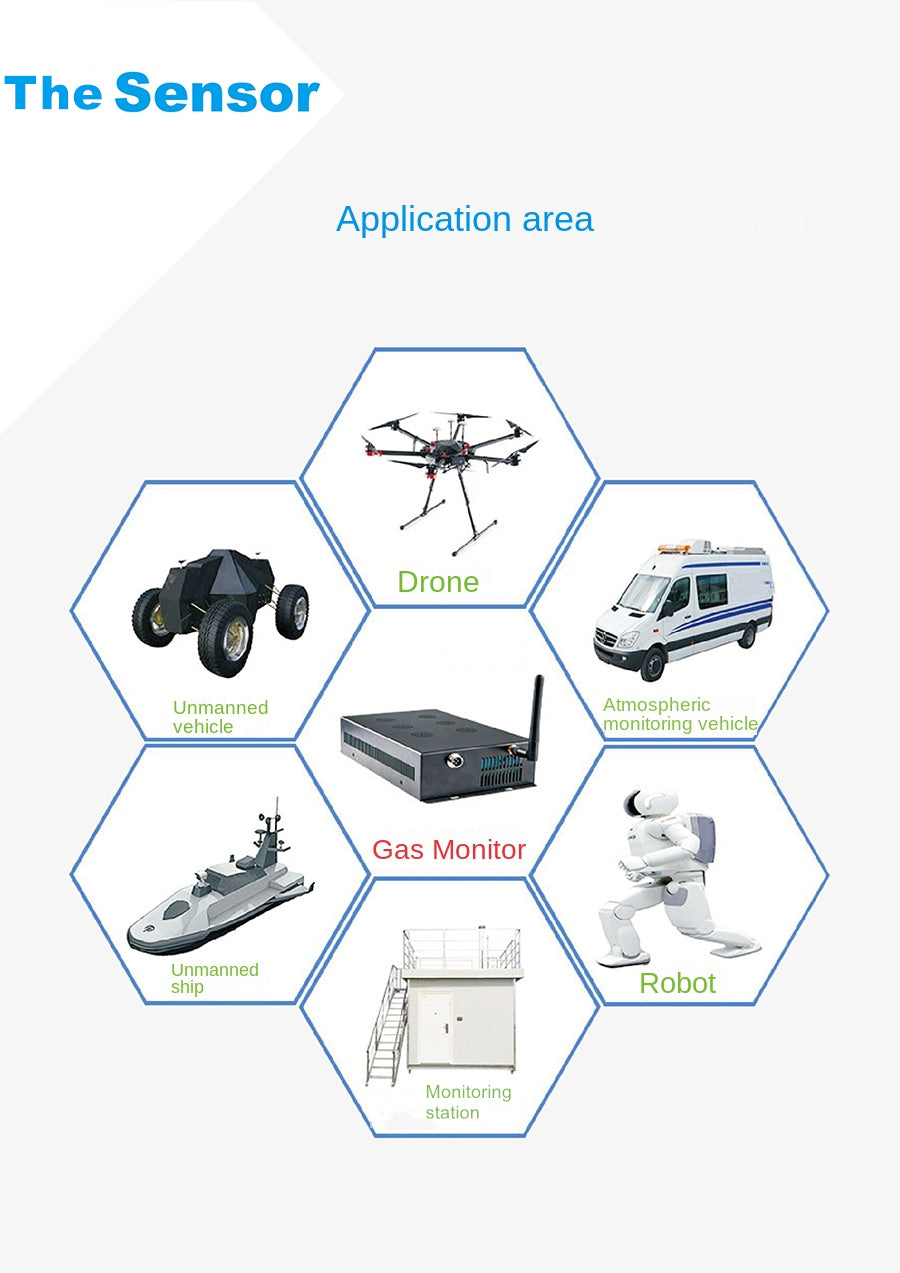 The unmanned aerial vehicle (UAV) environmental monitoring device is designed for environmental supervision and law enforcement, with high precision, small size, light weight, easy operation, and the ability to enter high-risk environments for work. It is convenient to be mounted on UAVs, unmanned vehicles, unmanned ships, robots, mobile law enforcement and other equipment, and can monitor real-time data of atmospheric pollutants in the environment. The device adopts wireless GPRS communication technology to transmit environmental monitoring data to the software platform, realizing online data query, trend curve analysis, data export, pollution source tracking, and can overcome factors such as unfavorable traffic and dangerous situations to provide accurate information for environmental protection decision-making. It can also greatly reduce the difficulty of environmental emergency workers' work, and at the same time, personal safety can be effectively guaranteed.