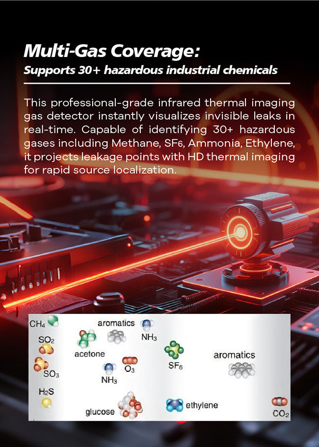 Wide-Spectrum Gas Identification: Designed to detect more than 30 types of hazardous gases—such as Methane, SF₆, Ammonia, and Ethylene—providing extensive protection across various industrial applications.